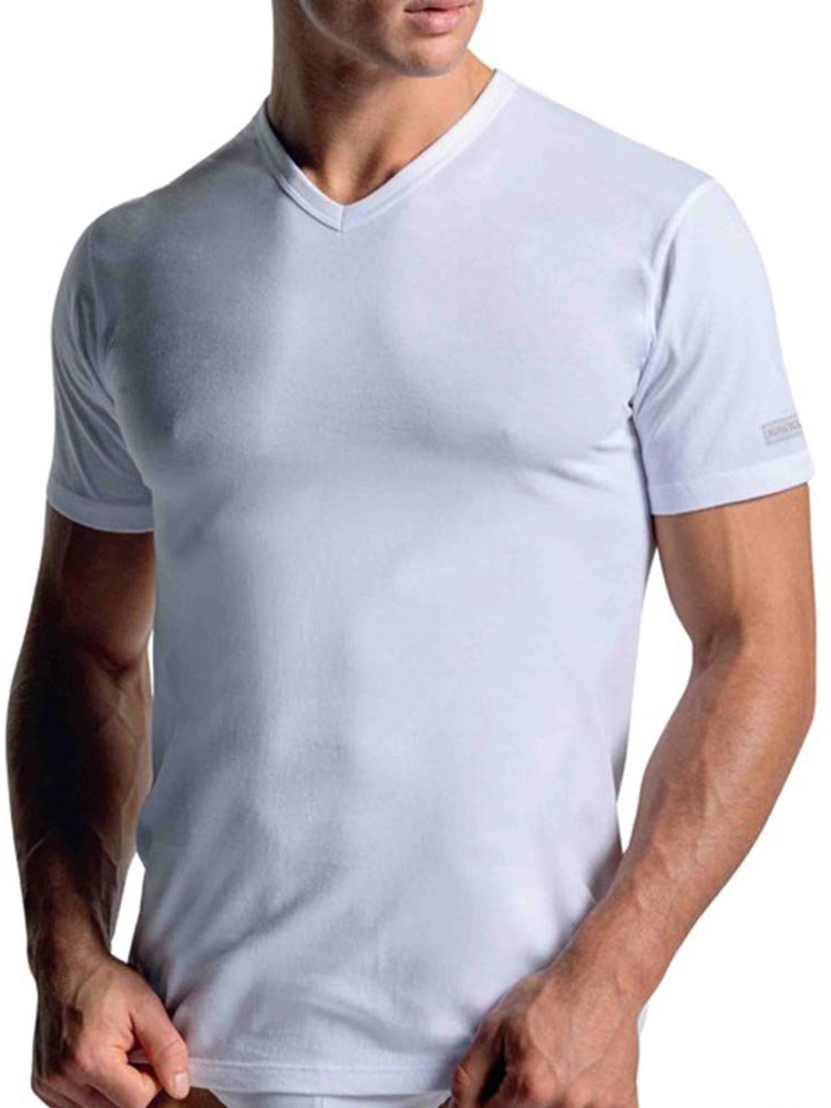 Maglia intima a mezza manica per uomo, scollo a V, in puro cotone 100%.