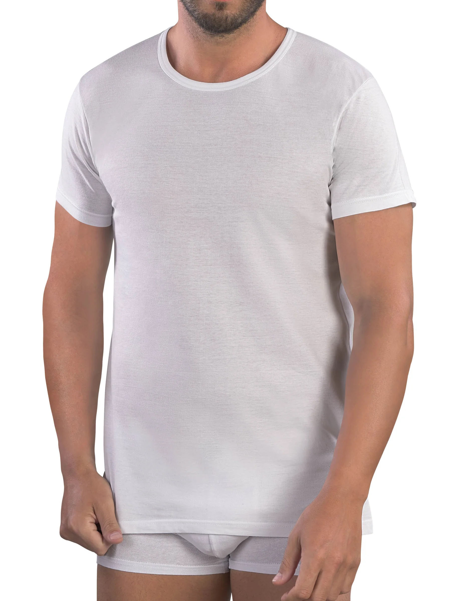 Maglia a mezza manica, girocollo, bordo basso, di 100% puro cotone jersey dalla incredibile leggerezza, freschezza e brillantezza in cotone makò. Un capolavoro di stile e qualità, ideale per chi cerca un prodotto esclusivo e di alto livello.