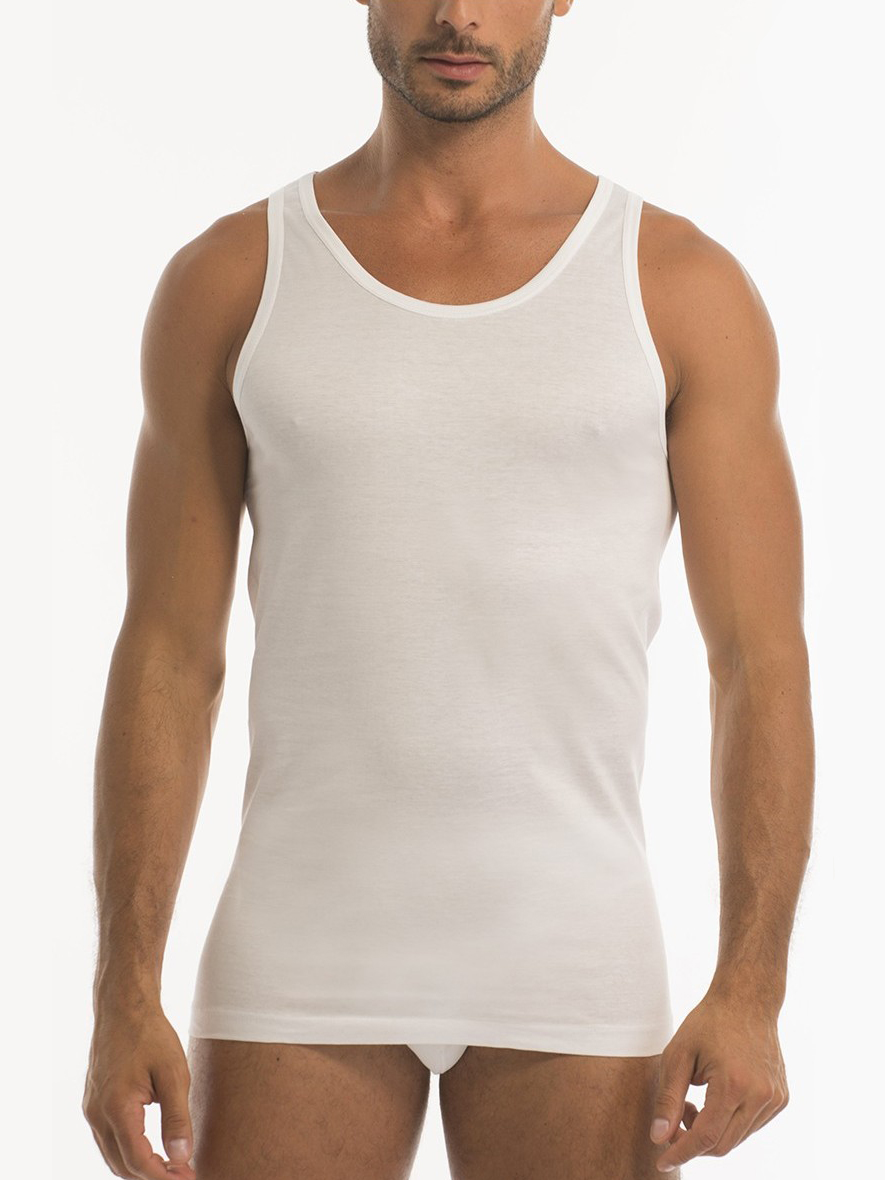 Canottiera spalla larga in jersey filo scozia senza cuciture sui fianchi. Un filato sottile e altamente traspirante anche nella stagione calda. La lavorazione Jersey avvolge il corpo con una lucentezza unica, per un'eleganza raffinata e senza tempo.