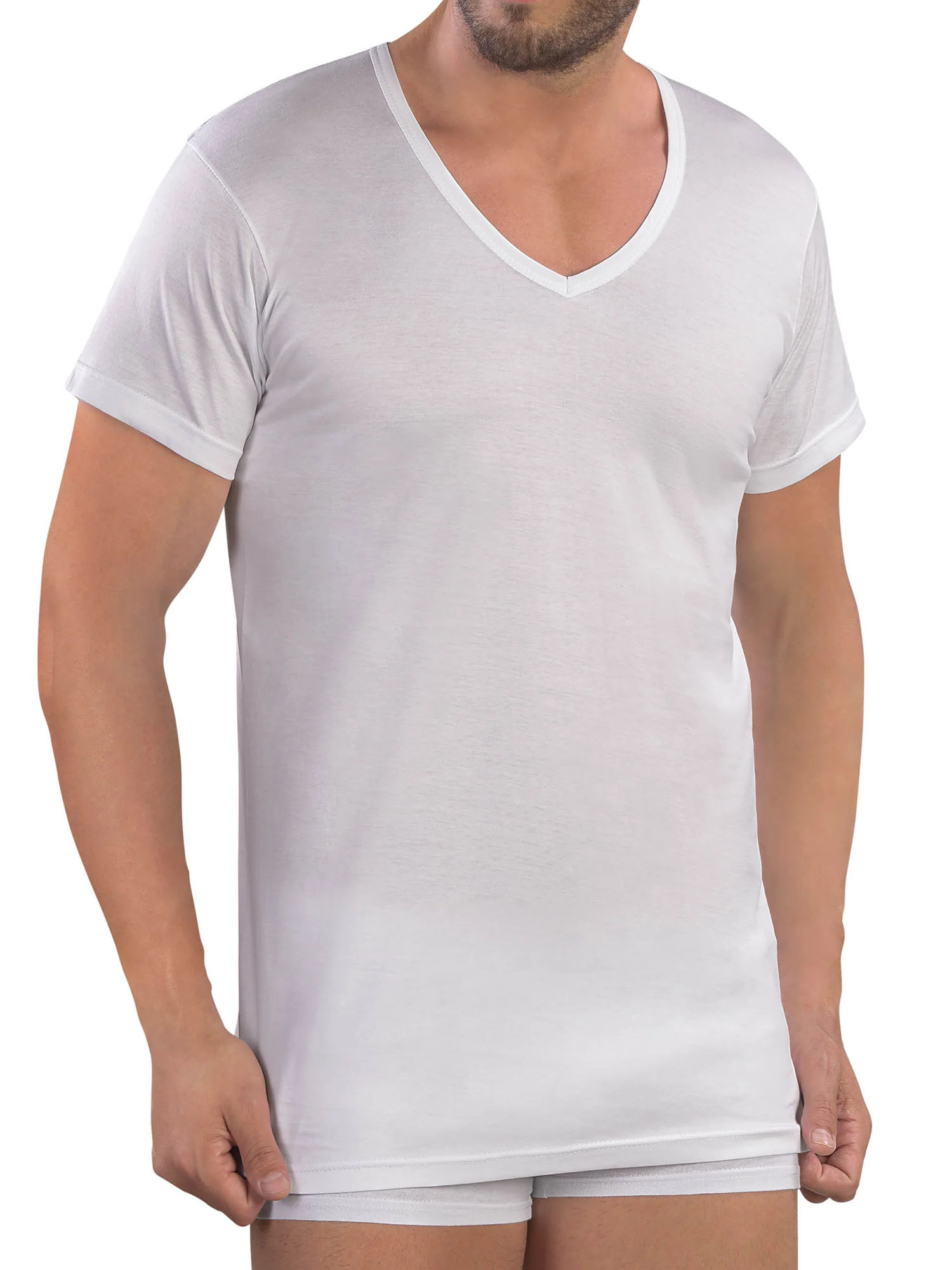 Maglia manica corta in jersey filo scozia, scollo a V, dall'ineguagliabile leggerezza, freschezza e qualità. Un simbolo di lusso e comfort per l'uomo moderno che esige solo il meglio.