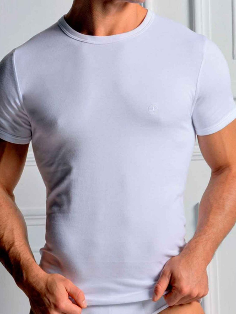 Maglia intima a mezza manica per uomo, girocollo, in cotone interlock.